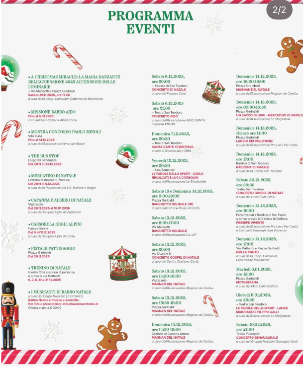 Un programma ricco che unisce associazioni, volontari e realtà locali per creare la magia del Natale canturino.